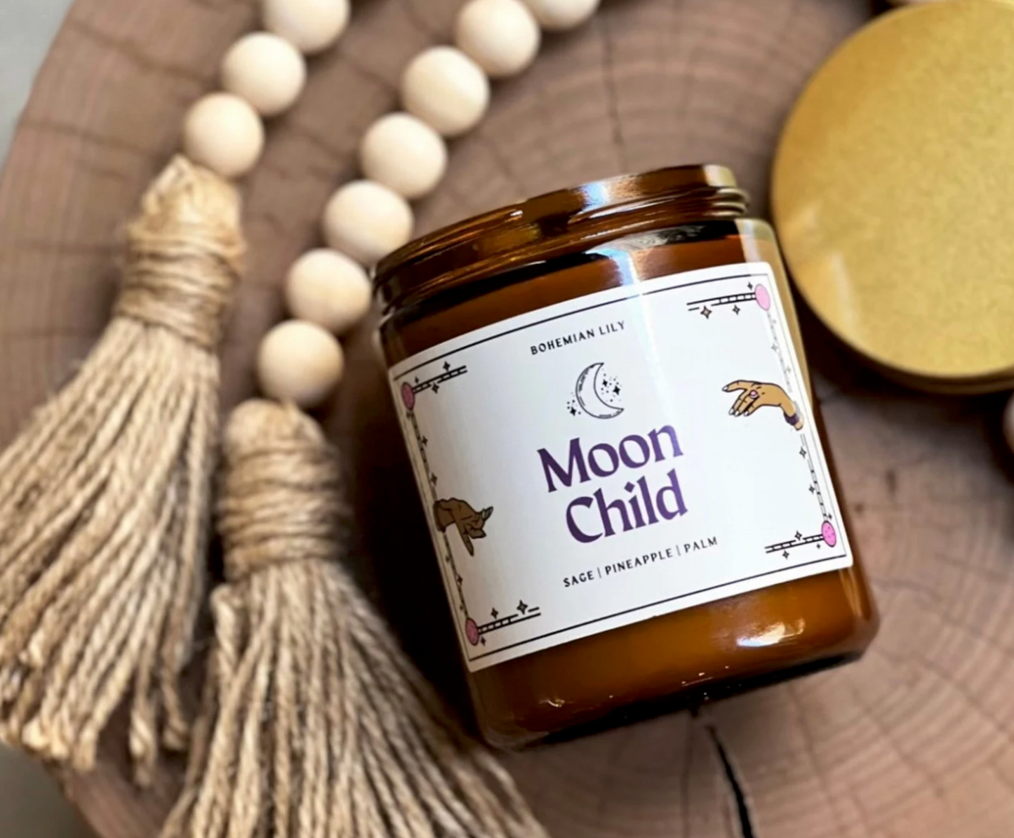 Poured in a beautiful amber jar filled with 7.2 oz of non-toxic and locally sourced soy wax.